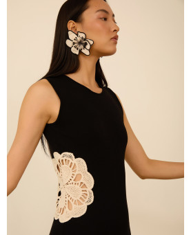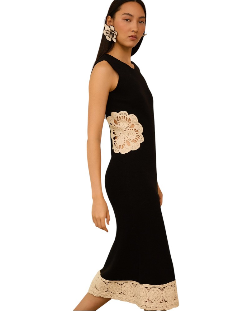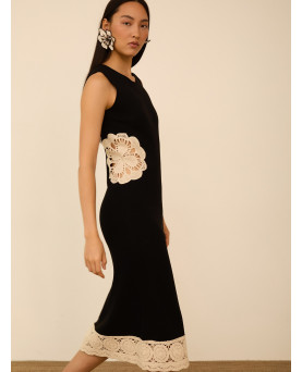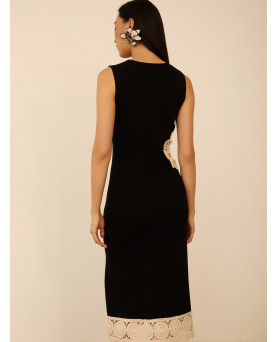 Vestido midi en punto de viscosa. Con pieza de algodón a contraste al vacío.